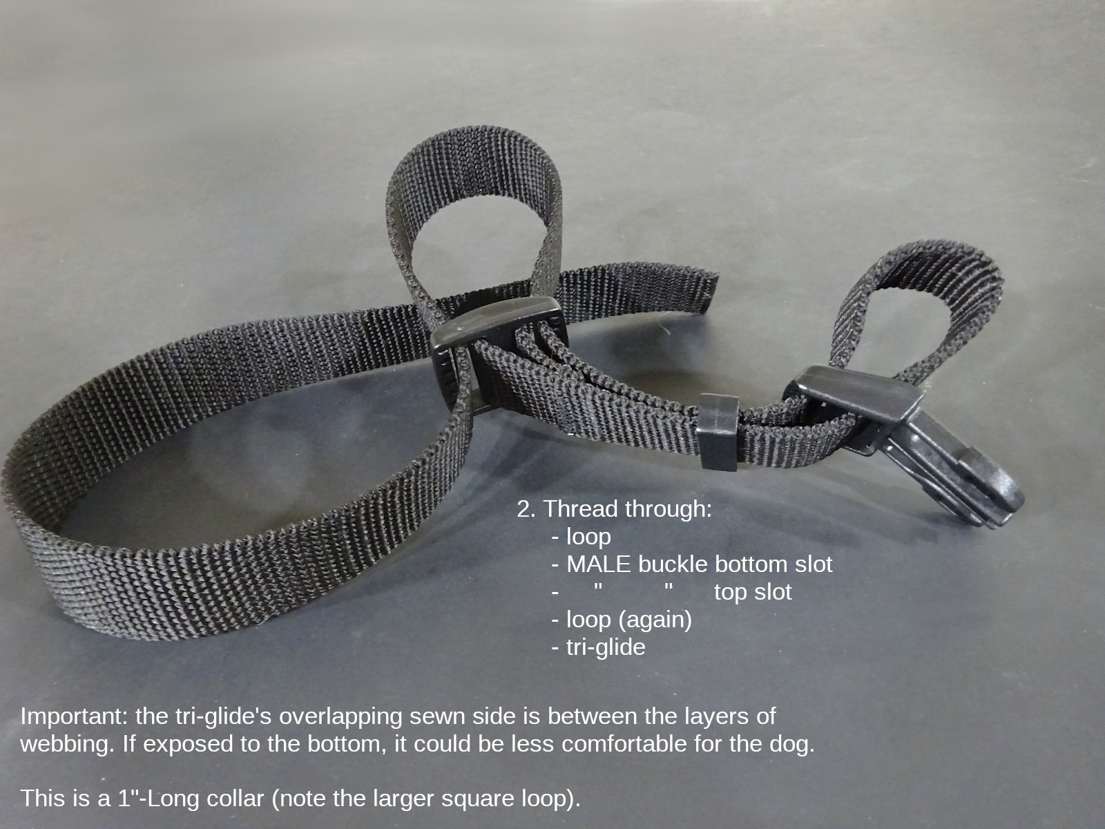 Note: The 1-1/2" loop has a curved side. The flat side should face the dog.