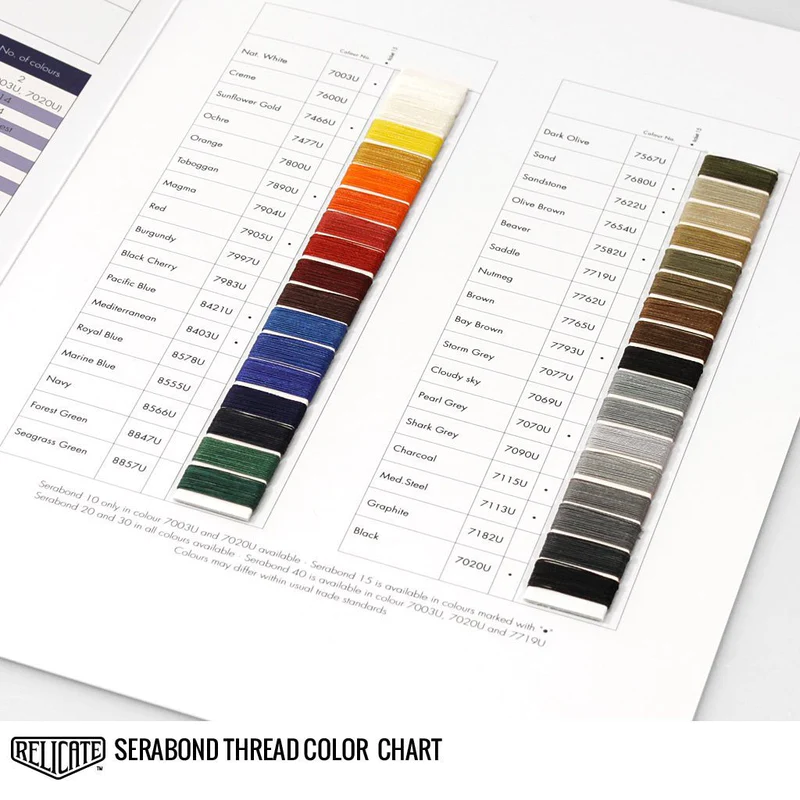 For the 3/8" light-duty leash, I use a blue Tex-70 thread I found on Amazon (ASIN: B06Y63HP4B) so it stands out from the 3/8" regular leash. For the 1" heavy-duty leash, I use Amann's ocher (7477) Tex-90 so it too stands out from the 1" regular leash. (This color is amber, like the color of stitching on blue jeans. Sometimes called "cowboy yellow.").