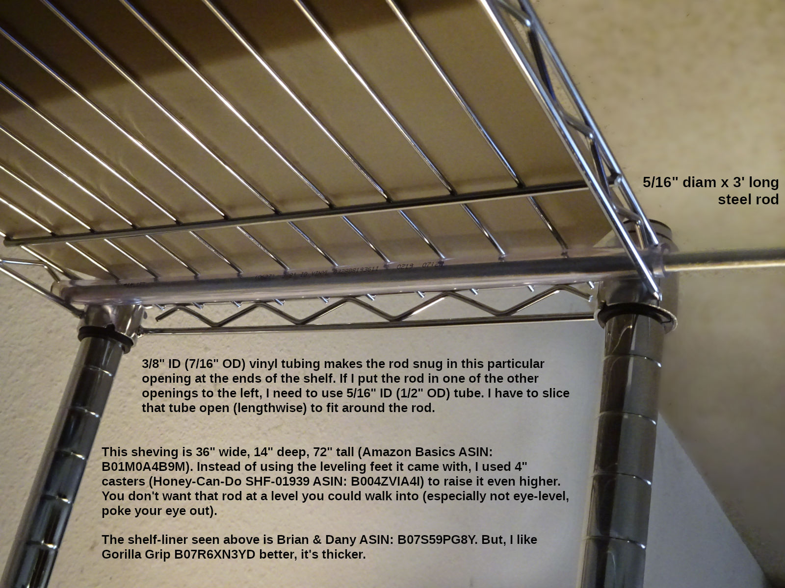 Usually the bolt-snap's sliding bolt can feel rough (crunchy) to operate. I'm in the habit of applying a couple drops of "Zoom-Spout" oil. (Mineral oil from the pharmacy would be fine. Anything thin, light like sewing-machine oil. You can get a gallon of "Lily White" on Amazon cheap.). To apply the oil, I inserted a 5/16" diameter steel rod (3' long) into the top of my wire-frame shelving (14" deep):