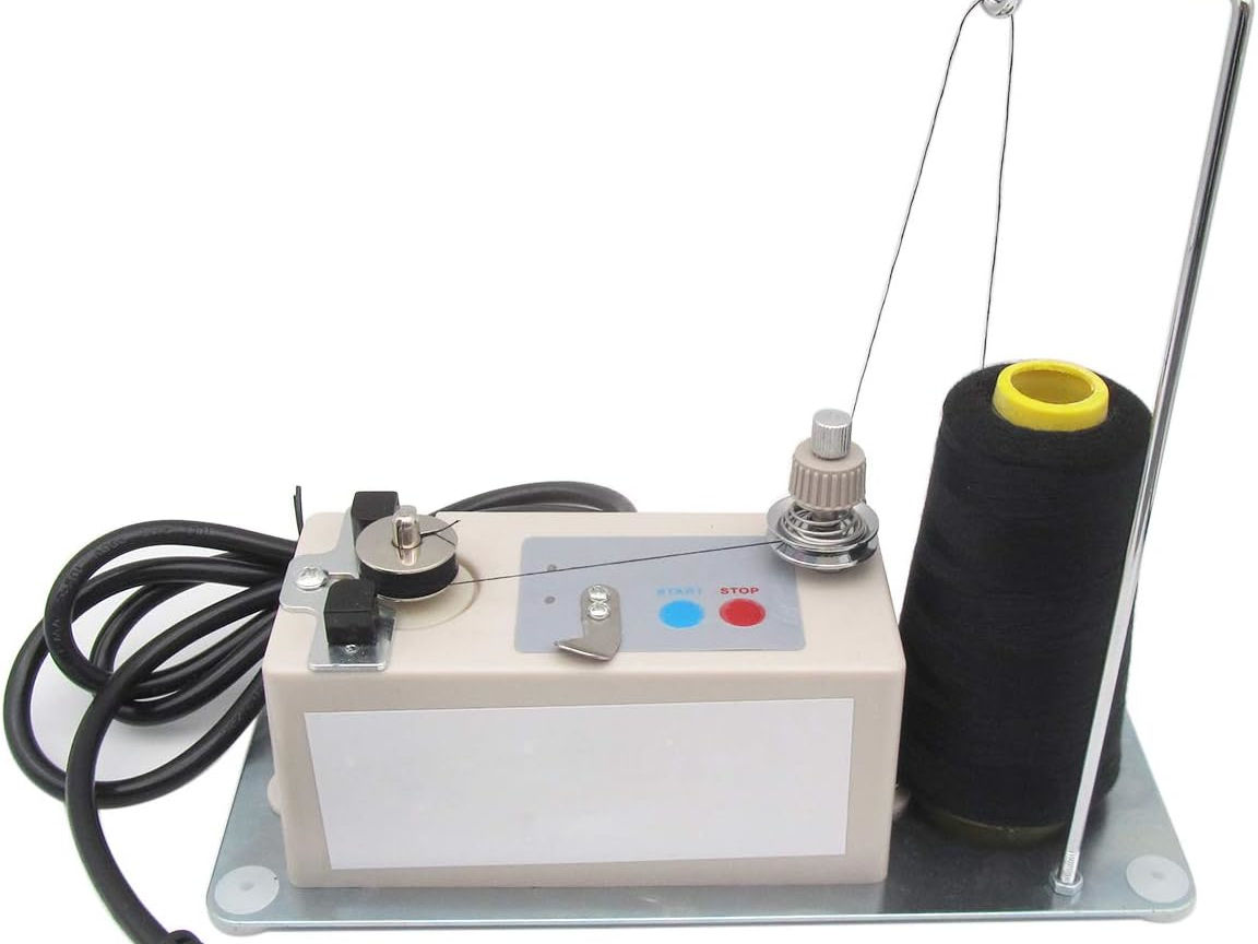 - Most of the spools I use won't fit its stand. You need a standalone thread stand. I have one with a cast-iron base (Amazon ASIN: B01ELYA1HC). That same stand is also sold with a plastic base. The cast-iron base is worth getting. I cut a piece of felt to fit the bottom, and glued it on.